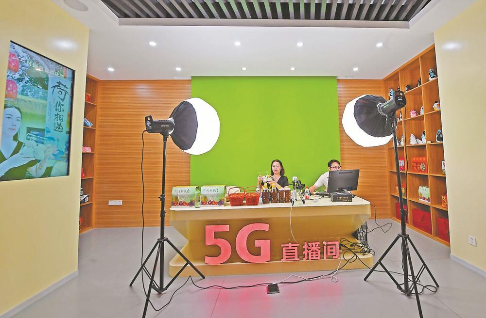 日前,在泉州市泉港區(qū)界山鎮(zhèn)東張村鄉(xiāng)村振興館5G直播間,當(dāng)?shù)卮笈锓N植戶正在進(jìn)行農(nóng)特產(chǎn)品直播帶貨。