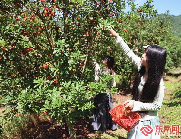 六月驕陽似火,三明泰寧縣大田鄉(xiāng)的石山泉農(nóng)場里一派生機勃勃、果香四溢的豐收景象。枝頭沉甸甸的紫黑楊梅、金黃誘人的早熟黃桃和連綿起伏的竹海,共同繪制出一幅動人的鄉(xiāng)村田園畫卷。游客們穿梭在果林間,親手挑選、采摘,體驗著從枝頭直達(dá)舌尖的新鮮與滿足。