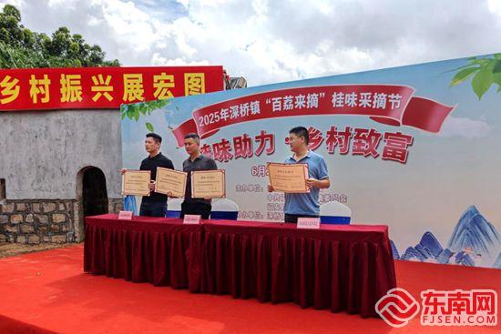 活動(dòng)現(xiàn)場(chǎng),隨著第一批寨口桂味荔枝被采摘下來(lái),并宣布開(kāi)采,這也標(biāo)志著詔安深橋鎮(zhèn)荔枝正式進(jìn)入豐收季。