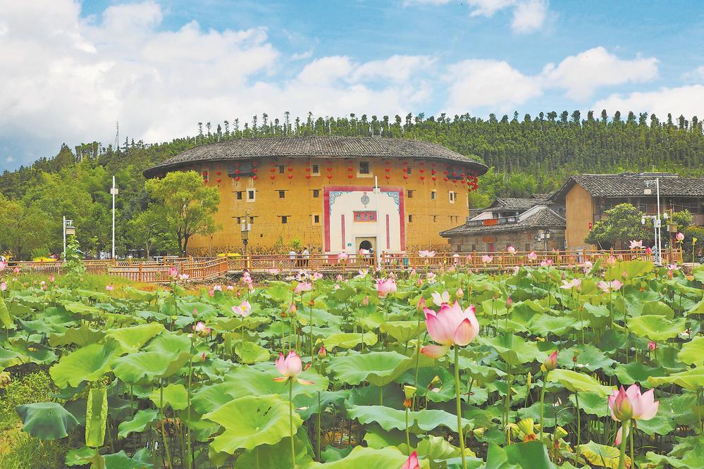 眼下,正值荷花盛開的季節(jié)。在漳州市南靖縣云水謠景區(qū)的和貴樓前,荷花競相開放,吸引游客紛至沓來,撬動當?shù)亍跋娜战?jīng)濟”發(fā)展。