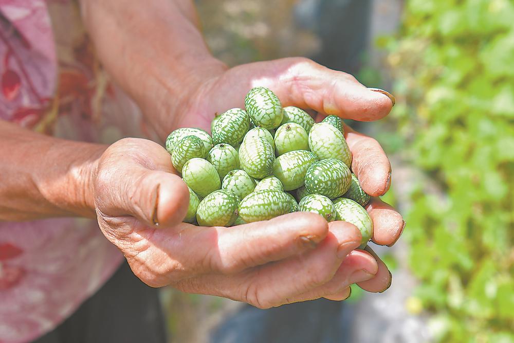 8月12日,泉州市德化縣赤水鎮(zhèn)吉嶺村引種的“拇指西瓜”迎來成熟季。這些直徑僅兩三厘米、個頭拇指大小的迷你西瓜,外皮帶著熟悉的西瓜紋路,內瓤青綠,一口一個,既有檸檬的清爽酸味,又透著黃瓜的清甜,獨特的口感令人驚喜。