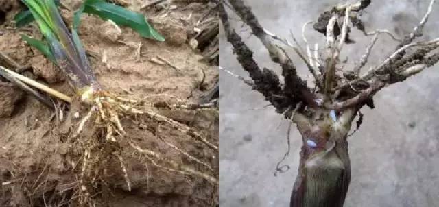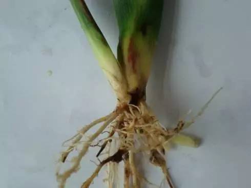 玉米根腐病是腐霉菌引起的病害,主要表現(xiàn)為中胚軸和整個(gè)根系逐漸變褐、變軟、腐爛,根系生長(zhǎng)嚴(yán)重受阻;植株矮小,葉片發(fā)黃,幼苗死亡。