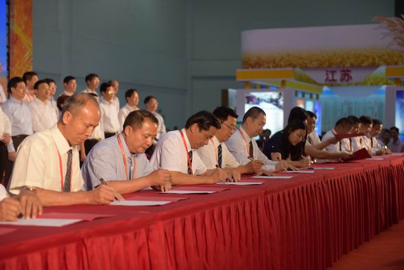 來自全國(guó)各地的1000余家糧食企業(yè)和科研院校4000多人參加了會(huì)議。會(huì)議期間,我省糧企與糧食主產(chǎn)省企業(yè)共簽訂項(xiàng)目315項(xiàng),省間糧食購(gòu)銷合同(協(xié)議)數(shù)量達(dá)636萬噸,合同金額170多億元;省內(nèi)糧食購(gòu)銷合同數(shù)量77萬噸;征集到科研院??萍汲晒?46項(xiàng)。