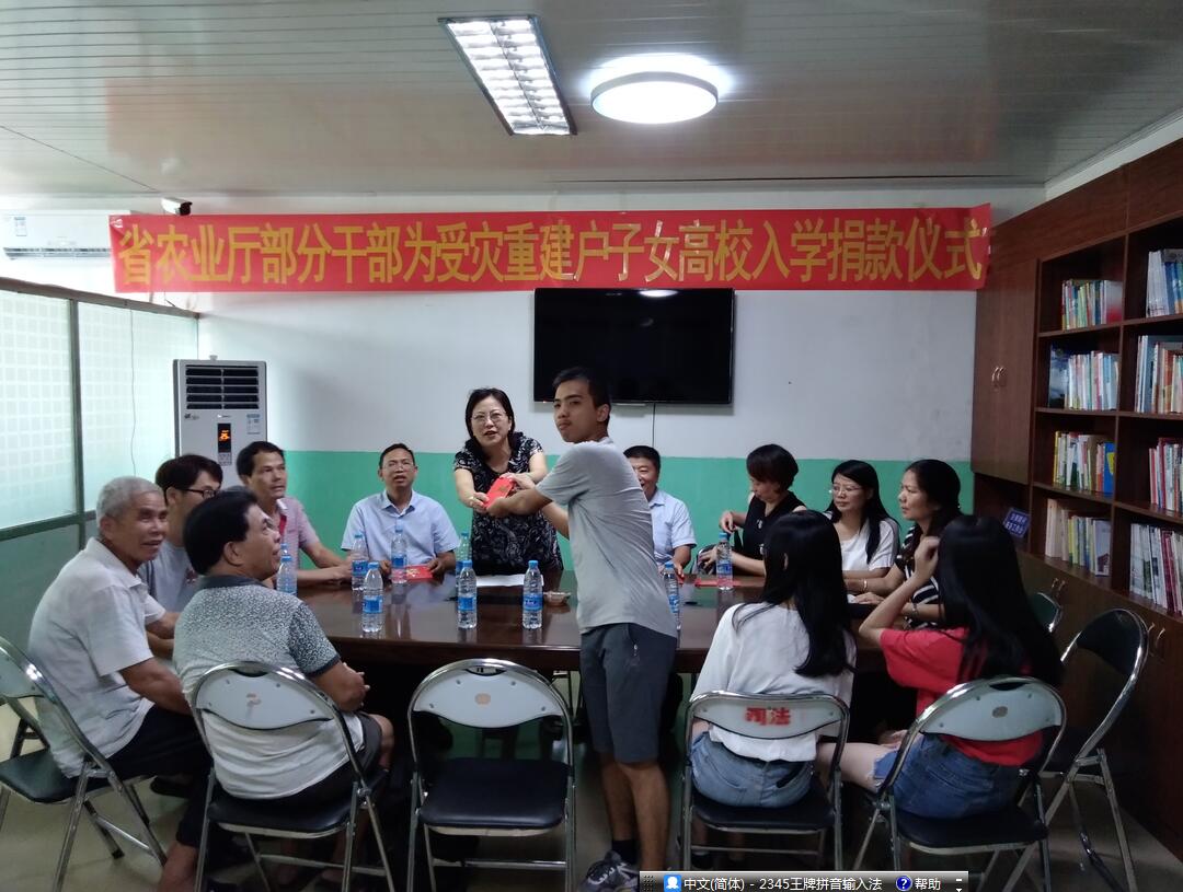 為了實(shí)現(xiàn)這14名同志心愿,9月6日,省農(nóng)業(yè)廳文明辦牽頭廳市場(chǎng)信息處劉玫、姚艷鴻,廳機(jī)關(guān)黨委潘奮強(qiáng)、人事處黃積少、省動(dòng)物疫控中心黃雁等部分黨員志愿者,代表這些同志到閩清縣坂東鎮(zhèn)去年遭受洪澇重災(zāi)戶家開(kāi)展捐資助學(xué)活動(dòng)。為確保公平、公正,事先委托當(dāng)?shù)剜l(xiāng)鎮(zhèn)、村進(jìn)行摸底、公示,從中選擇5個(gè)困難戶今年考取全日制大專以上子女進(jìn)行助學(xué),給予每位同學(xué)助學(xué)金1000元,其中坂中村2名、坂西村1名、坂東村1名、李坂村1名。
