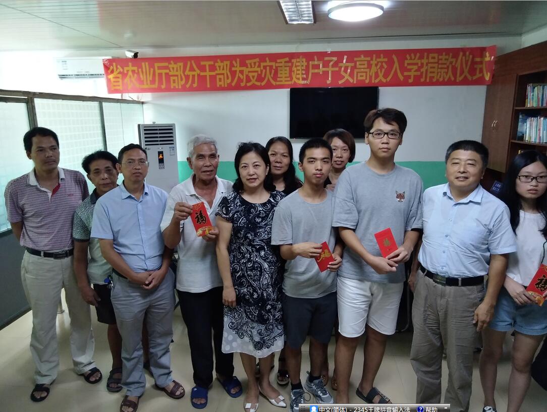 閩清縣坂東鎮(zhèn)去年7月9日遭受百年一遇特大洪澇災(zāi)害,省農(nóng)業(yè)廳閩清籍干部職工心系家鄉(xiāng)、關(guān)愛(ài)受災(zāi)群眾,在第一時(shí)間不同場(chǎng)合踴躍捐款捐物,為受災(zāi)群眾解燃眉之急。之后又有14名同志分別捐款100元至1000元不等總計(jì)5000元,大家商定這筆錢要用于資助重災(zāi)戶品學(xué)兼優(yōu)學(xué)生更有意義。
