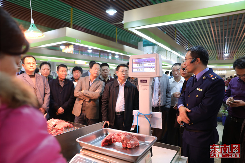 與會人員參觀廈門市思明區(qū)松柏菜市場智能化電子交易系統(tǒng)運作情況