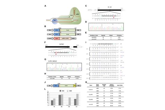 據(jù)悉,植保所周煥斌團(tuán)隊(duì)前期成功開(kāi)發(fā)出水稻單堿基編輯系統(tǒng)rBE3和rBE4工具盒(文章發(fā)表在《中國(guó)科學(xué):生命科學(xué)》Science China Life Sciences. 2017),實(shí)現(xiàn)了堿基C·G向T·A的替換。但是由于所有APOBEC1(鼠源胞嘧啶脫氨酶)具有TC偏好性,對(duì)GC編輯效率很低。有鑒于此,該團(tuán)隊(duì)引入人源AID胞嘧啶脫氨酶,開(kāi)發(fā)出rBE5和rBE9升級(jí)版系統(tǒng),成功、高效實(shí)現(xiàn)了對(duì)水稻中多個(gè)靶基因的高效定點(diǎn)編輯。該系統(tǒng)避免了APOBEC1(鼠源胞嘧啶脫氨酶)對(duì)TC偏好性的問(wèn)題,對(duì)TC,AC,GC和CC具有同樣較高的編輯效率,大大擴(kuò)展了單堿基編輯技術(shù)在植物上的應(yīng)用,對(duì)水稻功能基因組學(xué)和現(xiàn)代分子育種研究具有重大推進(jìn)作用。