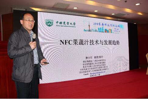 中國(guó)農(nóng)業(yè)大學(xué)食品科學(xué)與營(yíng)養(yǎng)工程學(xué)院副院長(zhǎng)、中國(guó)食品科學(xué)技術(shù)學(xué)會(huì)食品非熱加工技術(shù)分會(huì)理事長(zhǎng)廖小軍做了題為《NFC果蔬汁技術(shù)與發(fā)展趨勢(shì)》的報(bào)告。我國(guó)果蔬汁行業(yè)的產(chǎn)品以還原果蔬汁(Juices from concentrate,F(xiàn)C)為主,存在過度加工、高溫殺菌劣變、新品開發(fā)滯后、果蔬汁摻假等問題,制約了行業(yè)的健康發(fā)展,連續(xù)多年銷量沒有增長(zhǎng)。從全球果蔬汁市場(chǎng)變化看,果蔬汁正進(jìn)行轉(zhuǎn)型升級(jí),非還原果蔬汁(Juices not from concentrate,NFC)已成為主要的果蔬汁類型,而以超高壓技術(shù)為代表的新興加工技術(shù)推動(dòng)了果蔬汁行業(yè)的升級(jí)。報(bào)告分析了國(guó)內(nèi)外果蔬汁加工現(xiàn)狀以及超高壓技術(shù)應(yīng)用現(xiàn)狀,基于超高壓技術(shù)開發(fā)了果蔬汁“超高壓+”新工藝,研究了超高壓加工后果蔬汁的殺菌效果和品質(zhì)變化。