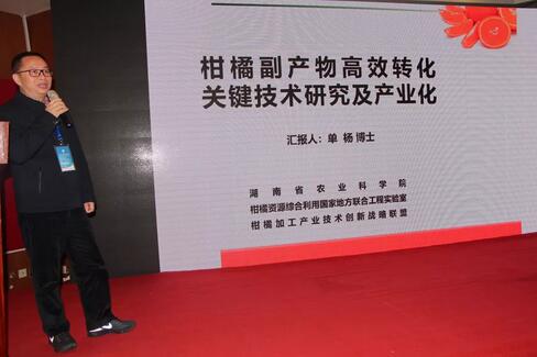 湖南省農(nóng)業(yè)科學(xué)院副院長(zhǎng)、教授,中國(guó)罐頭工業(yè)協(xié)會(huì)副理事長(zhǎng)單楊做了題為《柑橘副產(chǎn)物高效轉(zhuǎn)化關(guān)鍵技術(shù)研究及產(chǎn)業(yè)化》的報(bào)告。柑橘是世界第一大水果,我國(guó)柑橘面積3606萬畝、年產(chǎn)量3546萬噸,均排世界第一。全國(guó)每年產(chǎn)生柑橘皮渣1300多萬噸,內(nèi)含果膠13萬噸、香精油3萬噸、類黃酮1萬噸,總價(jià)值高達(dá)200億元以上,而國(guó)內(nèi)所需的這些產(chǎn)品主要依賴進(jìn)口。