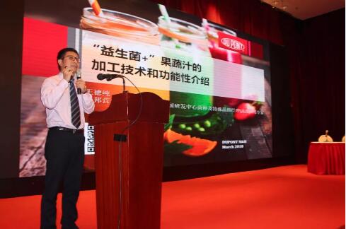 杜邦營(yíng)養(yǎng)與健康事業(yè)部中國(guó)研發(fā)中心、菌種及特殊品組經(jīng)理、高級(jí)應(yīng)用專家王德純做了題為《“益生菌+”果蔬汁的加工技術(shù)和功能性介紹》的報(bào)告。從New Nutrition Business提出的2018年全球十大食品、營(yíng)養(yǎng)健康趨勢(shì)來看,消化健康是排在第一位的趨勢(shì),而飲料新變革(或再定義)也是重要的一環(huán)。消化健康連年上榜,益生菌及發(fā)酵一直是熱點(diǎn)。
