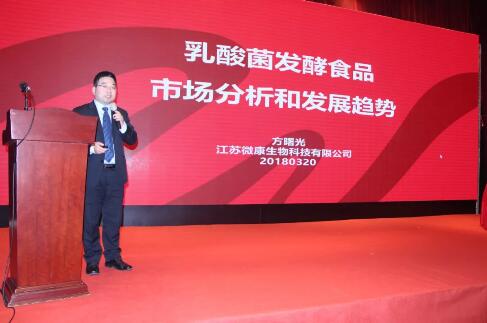 江蘇微康生物科技有限公司董事長(zhǎng)方曙光做了題為《乳酸菌發(fā)酵食品的市場(chǎng)分析和發(fā)展趨勢(shì)》的報(bào)告。乳酸菌廣泛應(yīng)用于乳制品、肉制品、醬腌菜制品、醬類制品等各類發(fā)酵食品中。隨著現(xiàn)代生物技術(shù)的發(fā)展,乳酸菌與人們的生活與健康越來越密切。