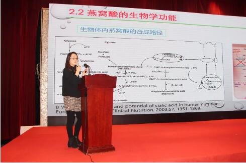 嘉必優(yōu)生物工程(武漢)有限公司孫立潔做了題為《燕窩酸功能和應(yīng)用研究(N-乙酰神經(jīng)氨酸、唾液酸)》的報(bào)告。燕窩酸又稱N-乙酰神經(jīng)氨酸(N-acetylneuraminic acid),是傳統(tǒng)補(bǔ)品——燕窩中具有生物活性的主要成份和燕窩的分級(jí)指標(biāo),也是母乳中對(duì)嬰兒早期大腦發(fā)育及免疫體系完善所提供的重要組份之一。