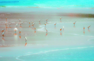 漳州市詔安縣梅嶺鎮(zhèn)南門灣頭一群沙鷗站立在沙灘上,猶如海上精靈。吳賜欣攝