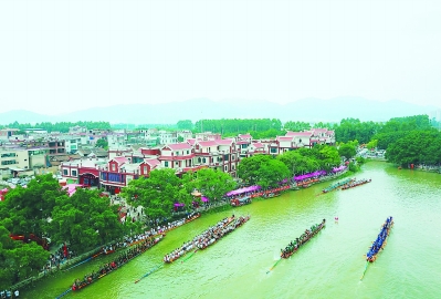 九十九灣河流整治,給周邊市民帶來了水清岸綠的舒適環(huán)境。圖為市區(qū)湘橋村,市民在清澈的河里劃龍舟。本報(bào)林熙攝