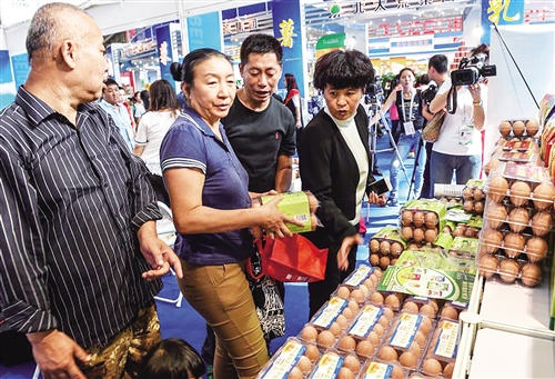黑龍江農(nóng)墾紅興隆管理局轄區(qū)內(nèi)生產(chǎn)的綠色有機(jī)笨雞蛋在大型展會(huì)上供不應(yīng)求。張 偉攝