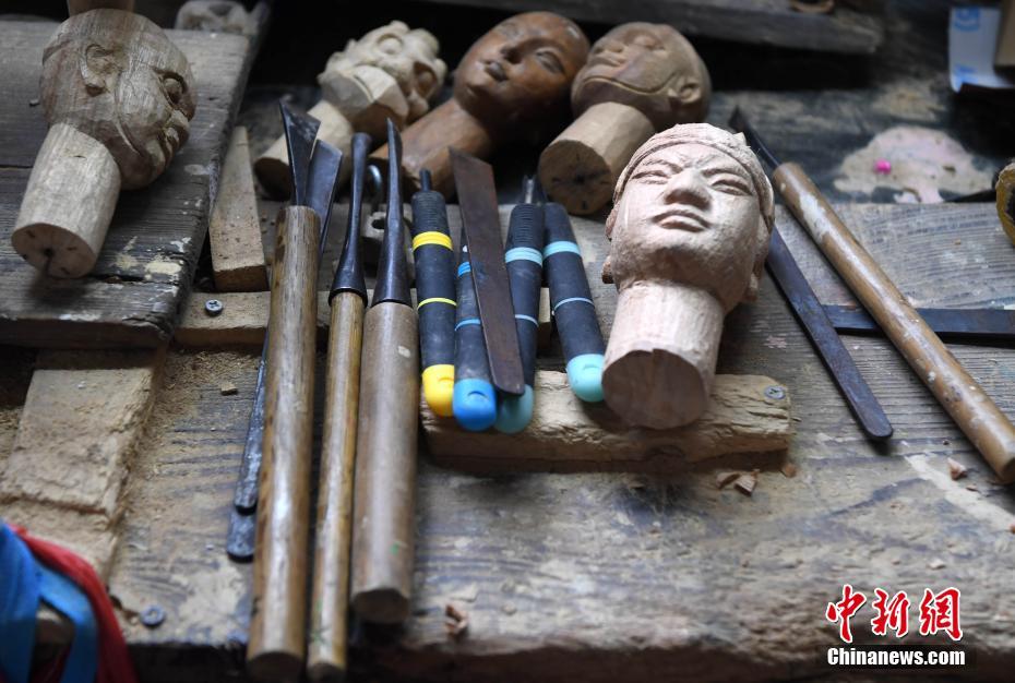 圖為楊亞州在其工作室雕刻木偶頭。已是福建漳州楊家“福春派”布袋木偶戲的第五代傳承人的楊亞州,9歲開始學(xué)習(xí)木偶頭雕刻,師從中國木偶雕刻藝術(shù)大師、北派木偶(漳州)風(fēng)格的代表人物許盛芳,后又融入了南派木偶(泉州)的風(fēng)格,對木偶頭進(jìn)行大膽的藝術(shù)創(chuàng)造,所雕木偶頭神韻含蓄,人物性格鮮明,夸張合理,并有地方特色,聞名海內(nèi)外。張斌 攝