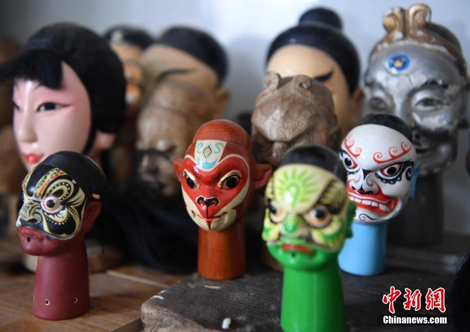 圖為工作室內(nèi)擺滿了各式各樣的木偶頭,栩栩如生。漳州木偶頭雕刻是木偶戲道具制作中的一門特殊技藝,屬于民間工藝美術(shù),主要分布在福建省漳州市、廈門市、泉州市及周邊地區(qū)。張斌 攝