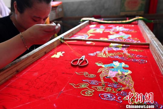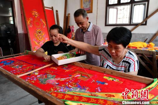 中新網(wǎng)寧德7月6日電 (葉茂 葉秋云)坐在案臺前,年逾六旬的刺繡手藝人劉吉春正和老伴忙著趕制一批刺繡用品,穿針走線間,一幅栩栩如生、惟妙惟肖的圖案躍然布面上。