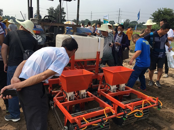 演示現(xiàn)場(chǎng),與會(huì)的農(nóng)戶們個(gè)個(gè)熱情高漲,認(rèn)真觀看。期間,不少農(nóng)戶走進(jìn)田間,丈量壟深壟寬、翻土查看播種、機(jī)收效果,熱烈討論花生機(jī)械化生產(chǎn)機(jī)具的利弊。