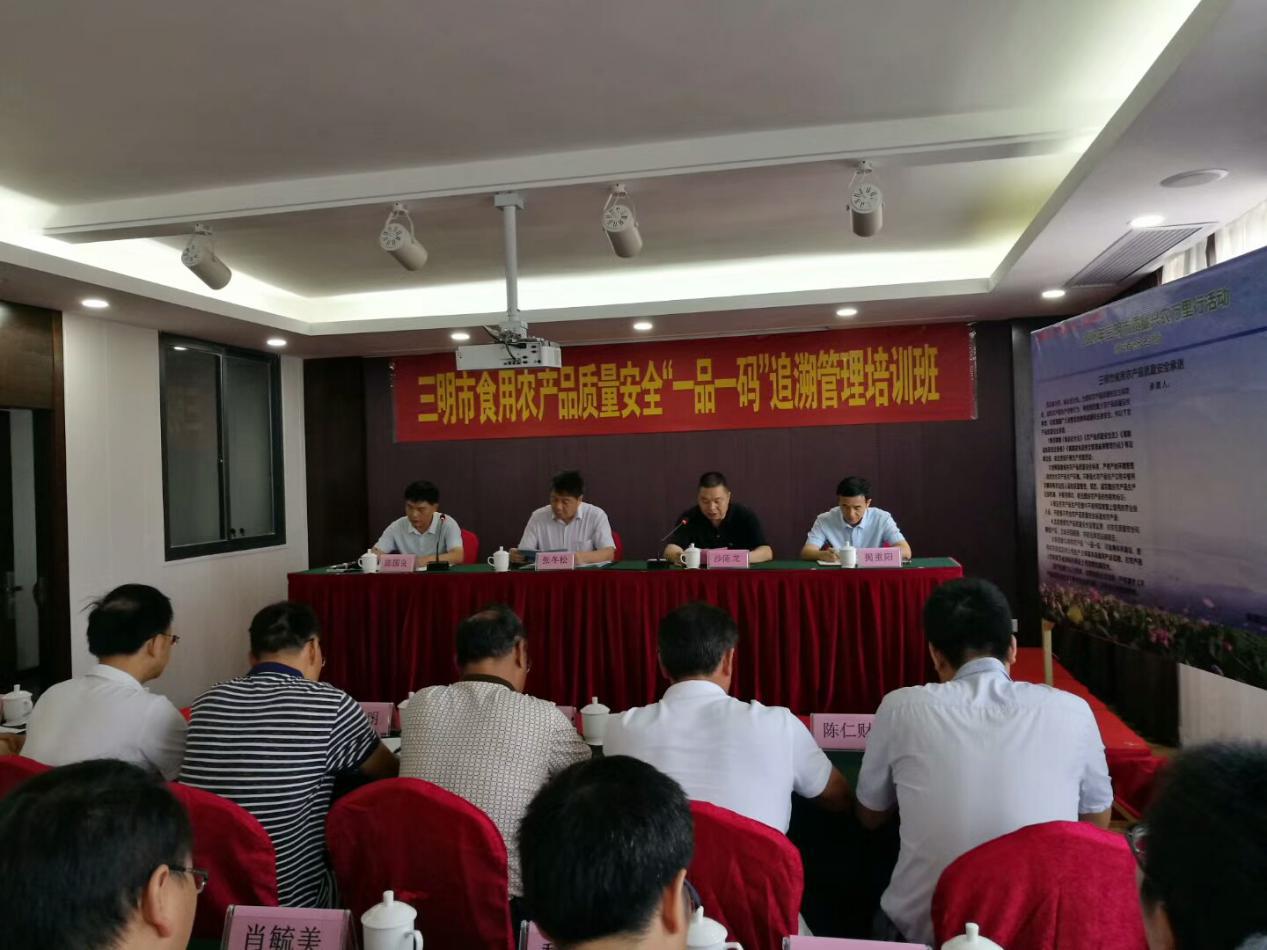 為貫徹落實(shí)《福建省食品安全信息追溯管理辦法》和省農(nóng)業(yè)廳食用農(nóng)產(chǎn)品“一品一碼”追溯體系培訓(xùn)班精神,全面推進(jìn)我市食用農(nóng)產(chǎn)品“一品一碼”全程追溯體系建設(shè),提升農(nóng)產(chǎn)品質(zhì)量安全水平。8月10日,三明市農(nóng)業(yè)局在建寧縣召開(kāi)三明市食用農(nóng)產(chǎn)品質(zhì)量安全“一品一碼”追溯管理培訓(xùn)班,組織各縣(市、區(qū))分管農(nóng)產(chǎn)品質(zhì)量安全領(lǐng)導(dǎo)和監(jiān)管機(jī)構(gòu)負(fù)責(zé)人、全市24家食用農(nóng)產(chǎn)品“一品一碼”生產(chǎn)主體負(fù)責(zé)人代表開(kāi)展培訓(xùn)。市局副局長(zhǎng)張冬松,建寧縣副縣長(zhǎng)沙陳龍出席培訓(xùn)開(kāi)班式。