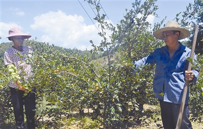 在石蒼村油茶基地,只見碩大的茶籽掛滿枝頭,林間穿梭著成群的農(nóng)戶,除草、施肥,歡聲笑語(yǔ)蕩漾著豐收的喜悅?!敖衲昵锛荆着筒枵酵懂a(chǎn)了。”村干部陳福進(jìn)告訴。2014年,該村一期投資30萬(wàn)元種植油茶示范面積300畝,5年來(lái),村兩委發(fā)動(dòng)村民陸續(xù)擴(kuò)大種植面積,目前已達(dá)到2000余畝。
