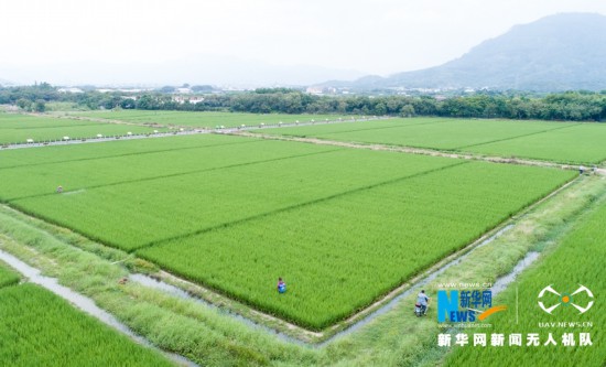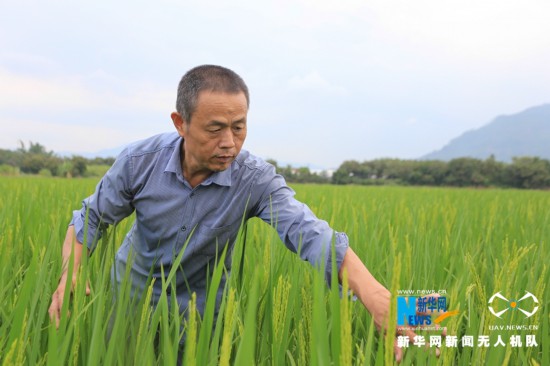 水稻正是抽穗、揚花時節(jié)。漳州高新區(qū)當?shù)剞r(nóng)民鄭建地下田查看水稻長勢。