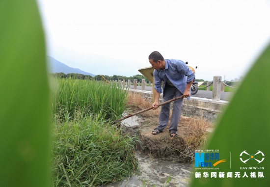 漳州高新區(qū)當?shù)剞r(nóng)民鄭建地正在農(nóng)田里清理水溝。