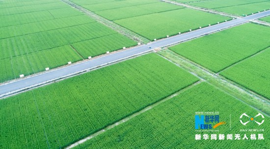 夏末秋初,單季稻長勢喜人。幾名農(nóng)民正在田里噴藥除蟲害。