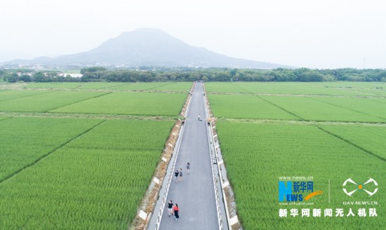 傍晚,市民到稻田邊散步納涼,感受生態(tài)田園之美。