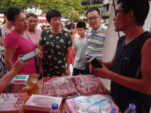 依托此次活動開展農(nóng)特產(chǎn)品展銷,在農(nóng)特產(chǎn)品展銷區(qū),向游客推薦了“泰紫茅”紫薯酒、“仁壽堡”百香果、“華眾生態(tài)”小龍蝦、福林肉兔、勇銘珍稀獼猴桃、大自然梅花鹿業(yè)公司鹿茸等產(chǎn)品,活動現(xiàn)場除免費品嘗肉兔、百香果和試飲紫薯酒外,還通過游戲競賽、競猜、關(guān)注微信等形式免費發(fā)放小龍蝦優(yōu)惠券、百香果、紫薯酒。