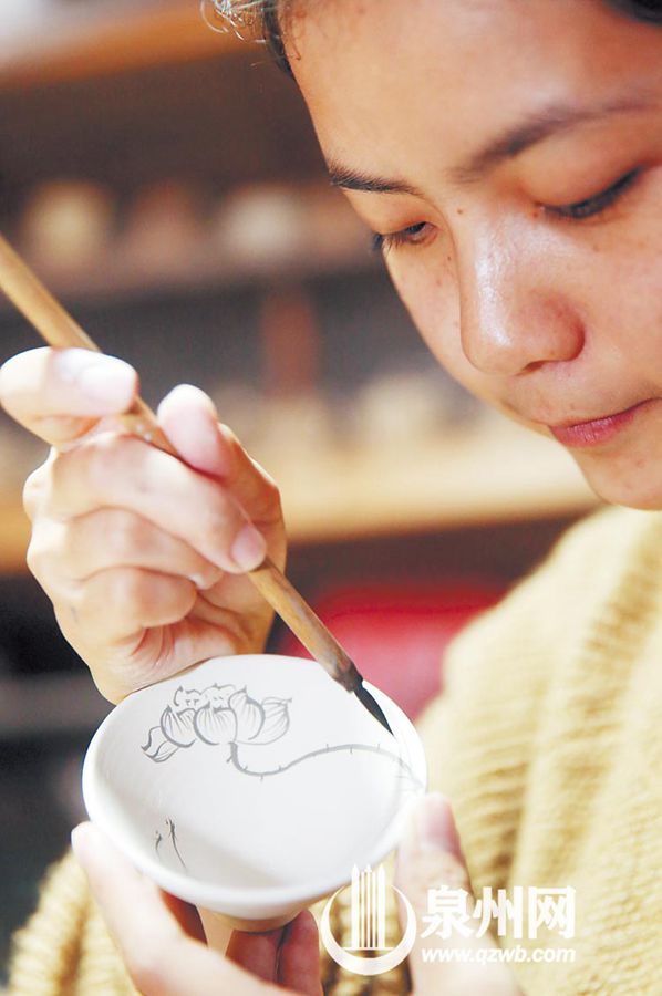 陶瓷繪圖,異于平面作畫,依據(jù)弧度順勢(shì)而為,更要小心是否粗細(xì)得當(dāng)、濃淡相宜。