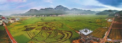 秋風(fēng)吹來,數(shù)百畝成片稻谷隨風(fēng)搖曳,沉甸甸的谷穗,像一壟壟金黃的珍珠,金濤滾滾;百畝向日葵花海在陽光下依次盛放,微風(fēng)吹拂,形成一片金色的海洋;人們或在田間耕種勞作,或在村中忙碌建設(shè),處處洋溢著豐收與富民的喜悅……