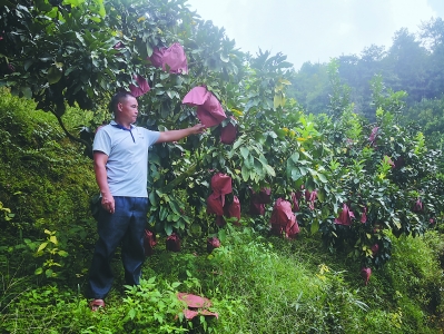 張國初介紹蜜柚種植情況。 劉必然 攝