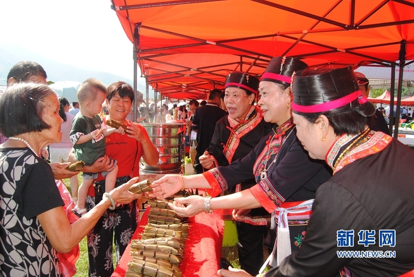 閩東畬族鄉(xiāng)村不裹三角粽,而裹菅粽。畬族菅葉粽在現(xiàn)場很受歡迎。 新華網(wǎng) 劉豐 攝