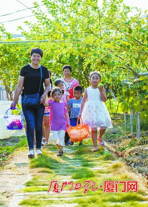 廈門(mén)市休閑農(nóng)業(yè)和鄉(xiāng)村旅游展現(xiàn)勃勃生機(jī)。圖為游客到翔安榮杰園采摘水果。