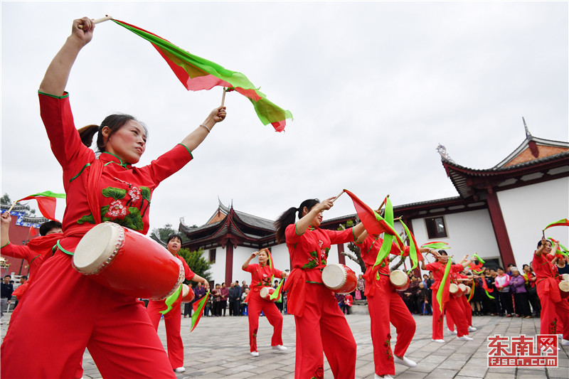 村里的腰鼓隊為老人們表演節(jié)目。 福建日報 林輝 攝