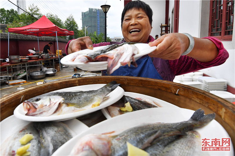 一兩米高的蒸籠冒著熱氣,村民正準備把美食端上桌。 福建日報 林輝 攝