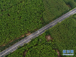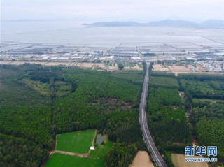 這是東山縣陳城鎮(zhèn)一條公路兩邊的沿海防護(hù)林(10月17日無人機(jī)拍攝)。