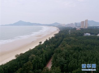 這是10月18日拍攝的東山縣金鑾灣沿海防護(hù)林(無人機(jī)拍攝)。
