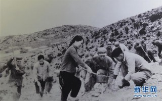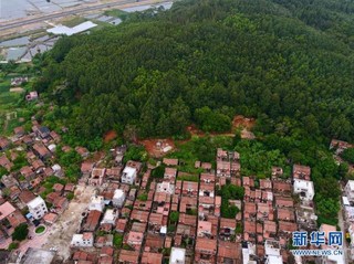 這是拼版照片顯示的是20世紀(jì)50年代東山縣一場風(fēng)災(zāi)過后被風(fēng)沙掩埋一半的民房(資料照片)。