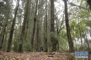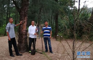 10月17日,東山縣赤山林場工作人員查看木麻黃生長情況。