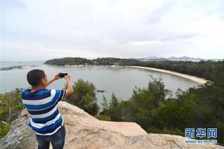 10月17日,游人在東山縣東門嶼景區(qū)游覽。東門嶼原為一處荒島,經(jīng)過多年艱苦的植樹造林,如今已成為綠樹成蔭的旅游景區(qū)。