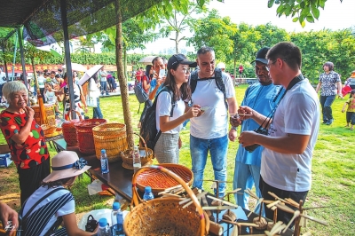 綠港園生態(tài)農(nóng)場的竹器編制等傳統(tǒng)文化元素吸引國外游客目光。