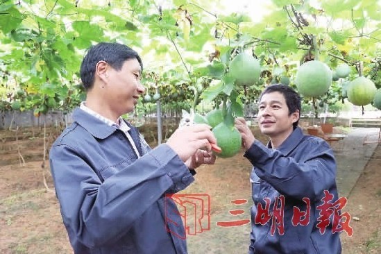 10月23日,在福建冠瑞生物科技有限公司瓜蔞種植基地,技術(shù)員正在給瓜蔞修剪枝葉。冠瑞公司旗下現(xiàn)有“李錦福”“年年福”兩個食品商標,在全國擁有100多個瓜蔞種植基地,種植面積達2萬多畝,年產(chǎn)瓜蔞約2000噸,年產(chǎn)值約1.2億元。(曾程 開涯 曉星 文/圖)