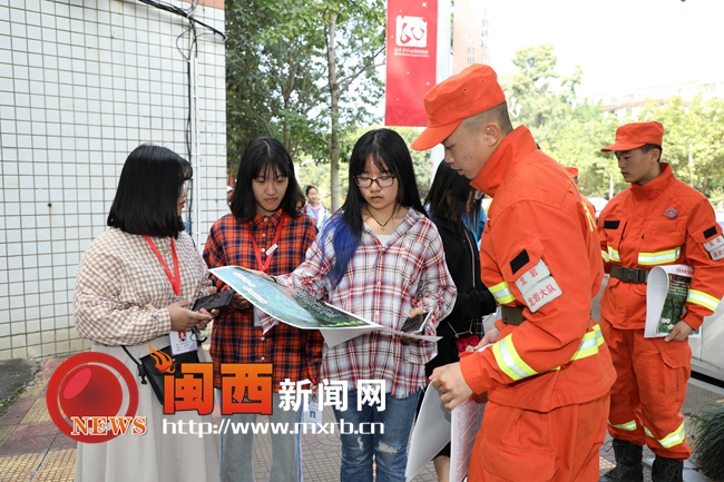 閩西新聞網(wǎng)訊( 童鵬程 )“進(jìn)入森林防火期,野外用火一定要注意采取防火措施,發(fā)生森林火災(zāi)緊急避險(xiǎn)方法有沖越火線避險(xiǎn)、點(diǎn)迎面火避險(xiǎn)、點(diǎn)順風(fēng)火避險(xiǎn)、利用防護(hù)裝備避險(xiǎn)……”11月9日上午,在全國(guó)第28個(gè)“119”消防宣傳日活動(dòng)到來(lái)之際,龍巖森林消防支隊(duì)龍巖大隊(duì)40余名消防指戰(zhàn)員走進(jìn)龍巖學(xué)院開(kāi)展森林防火宣傳。