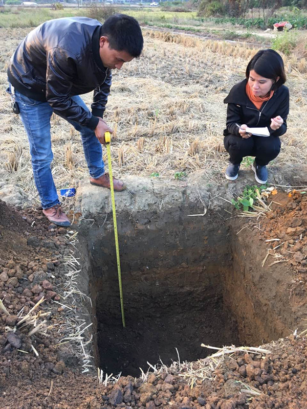 11月14日,清流縣土肥站和靈地鎮(zhèn)農(nóng)業(yè)服務(wù)中心工作人員,深入到靈地鎮(zhèn)大坪村,在監(jiān)測點(diǎn)田塊進(jìn)行開挖土壤剖面進(jìn)行相關(guān)數(shù)據(jù)記載,采取了剖面樣本。通過對耕地質(zhì)量定點(diǎn)監(jiān)測,分析作物產(chǎn)量與土壤養(yǎng)分消長規(guī)律,判斷施肥是否合理,為科學(xué)施肥、保護(hù)耕地質(zhì)量、實(shí)施農(nóng)業(yè)可持續(xù)發(fā)展提供依據(jù)。