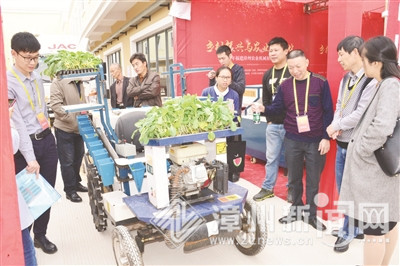 展會(huì)現(xiàn)場(chǎng),一款新型蔬菜移栽機(jī)吸引了大家的目光。本報(bào)張偉斌攝