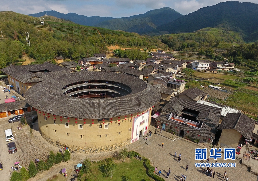 “福建土樓”產(chǎn)生于宋元時期,主要分布在福建省龍巖市永定區(qū),漳州市南靖縣、華安縣。因其大多數(shù)為遷徙至福建的客家人所建,故又稱“客家土樓”。這一獨特的山區(qū)大型夯土民居建筑,融入了中國傳統(tǒng)建筑的“風(fēng)水”理念,適應(yīng)聚族而居的生活和防御的要求,體現(xiàn)了人文造詣與自然環(huán)境的和諧共享。2008年,福建土樓被正式列入《世界遺產(chǎn)名錄》。