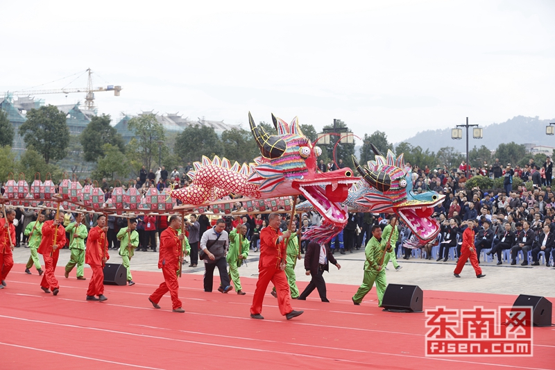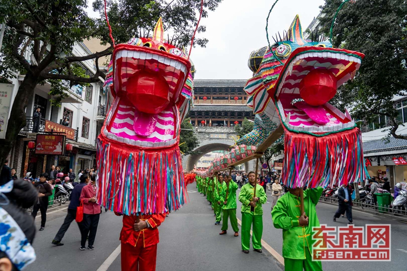 古城長汀擁有上千年的悠久歷史,有著豐富的客家民俗,九連環(huán)、采茶燈、客家十番音樂、玻璃子燈、刻紙龍燈……當(dāng)日,各鄉(xiāng)鎮(zhèn)的近20項(xiàng)客家文藝民俗從母親緣廣場出發(fā),沿著主街區(qū)文藝踩街,為沿途市民與游客帶去豐富的民俗展演,不時(shí)引起陣陣掌聲和叫好聲。