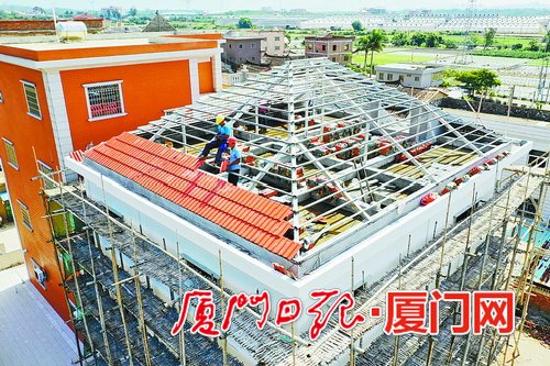 同安竹壩將打造國(guó)內(nèi)一流鄉(xiāng)村振興樣本典范。圖為啟動(dòng)平改坡建設(shè)和裸房整治,提升人居環(huán)境。(竹壩華僑經(jīng)濟(jì)開發(fā)區(qū)供圖)